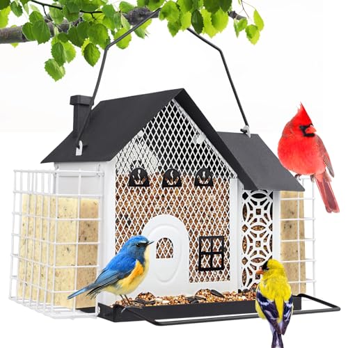 Additionally, the feeder’s easy-to-clean and refill design saves time and effort, ensuring that the feeder remains hygienic and inviting for birds. Its charming white house shape not only provides functionality but also enhances the aesthetic appeal of your garden or patio. Overall, this bird feeder is thoughtfully designed to deliver both practical benefits and visual delight for bird enthusiasts.