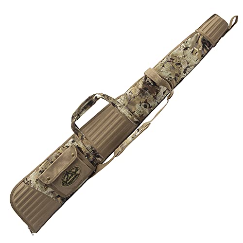 The Rig’Em Right case offers EVA stock and barrel protection, a rainproof zipper, and choke tube holders. It measures 53″ long, perfect for most bird hunting shotguns. Its Optifade Marsh Camo design helps with camouflage in wetlands, enhancing hunting stealth and gear safety.