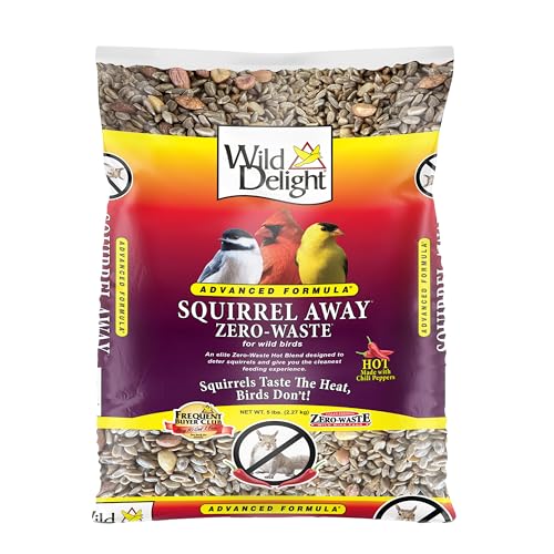 Wild Delight Advanced Formula Squirrel Away offers zero waste. It contains large seeds squirrels and blackbirds avoid. This blend reduces mess and saves money by feeding only target bird species.
