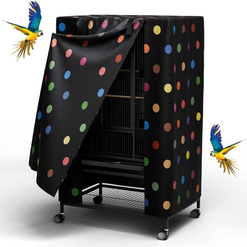 Tchvt Nighttime Bird Cage Covers with Zipper Panel Blackout Birdcage for Winter Universal Breathable Large Good Night Enclosure for Bird (Polka Dot, 33x23x41 inch)