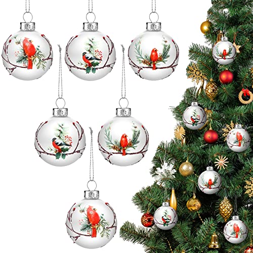 6 Pcs Cardinal Bird Owl Glass Christmas Tree Round Ball Ornaments