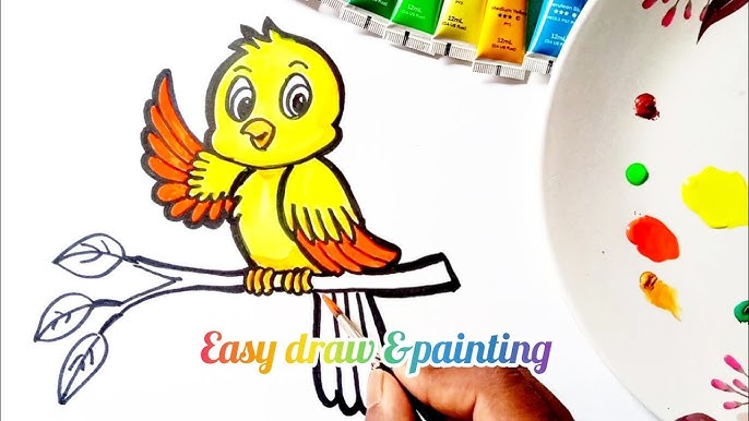 Begin by drawing a simple oval for the body. Add a smaller circle on top for the head. Use lines for the wingsand tail. Place a triangle for the beak. Keep shapes soft and round. This helps your bird look friendly.
